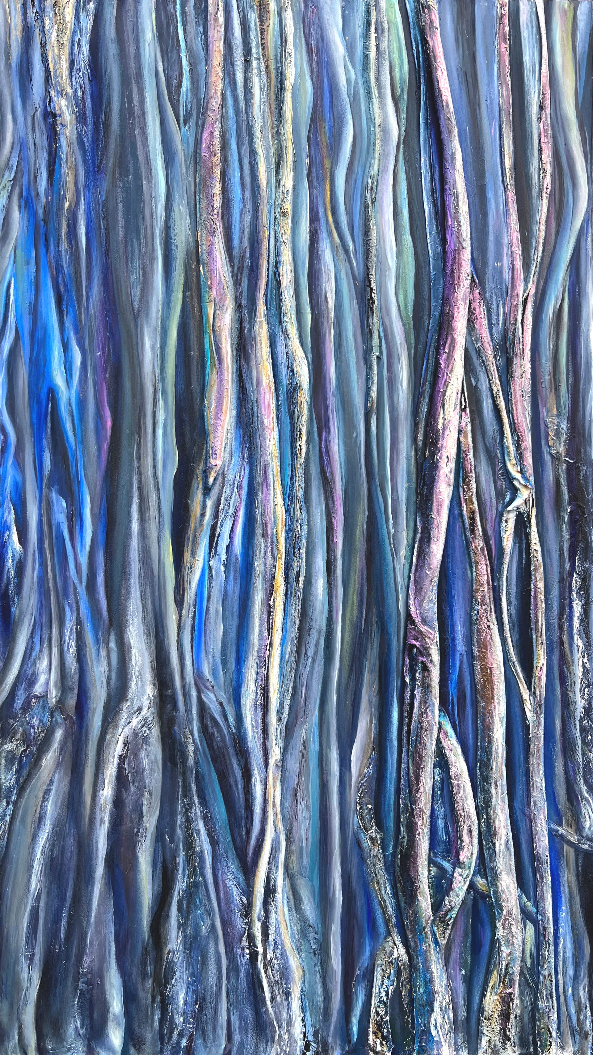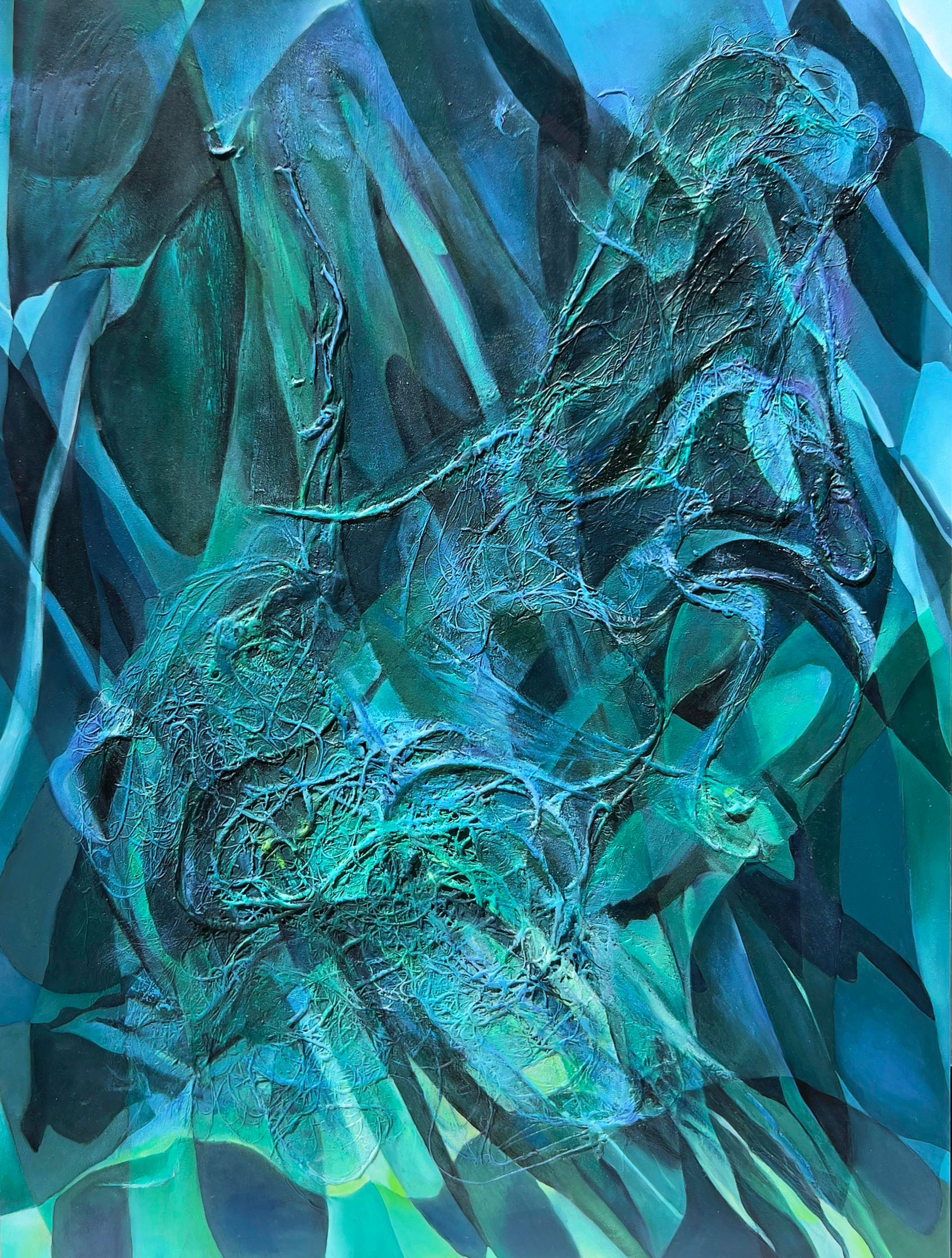 Mixed Media with Oil and Fiber on Panel, 48x32x2