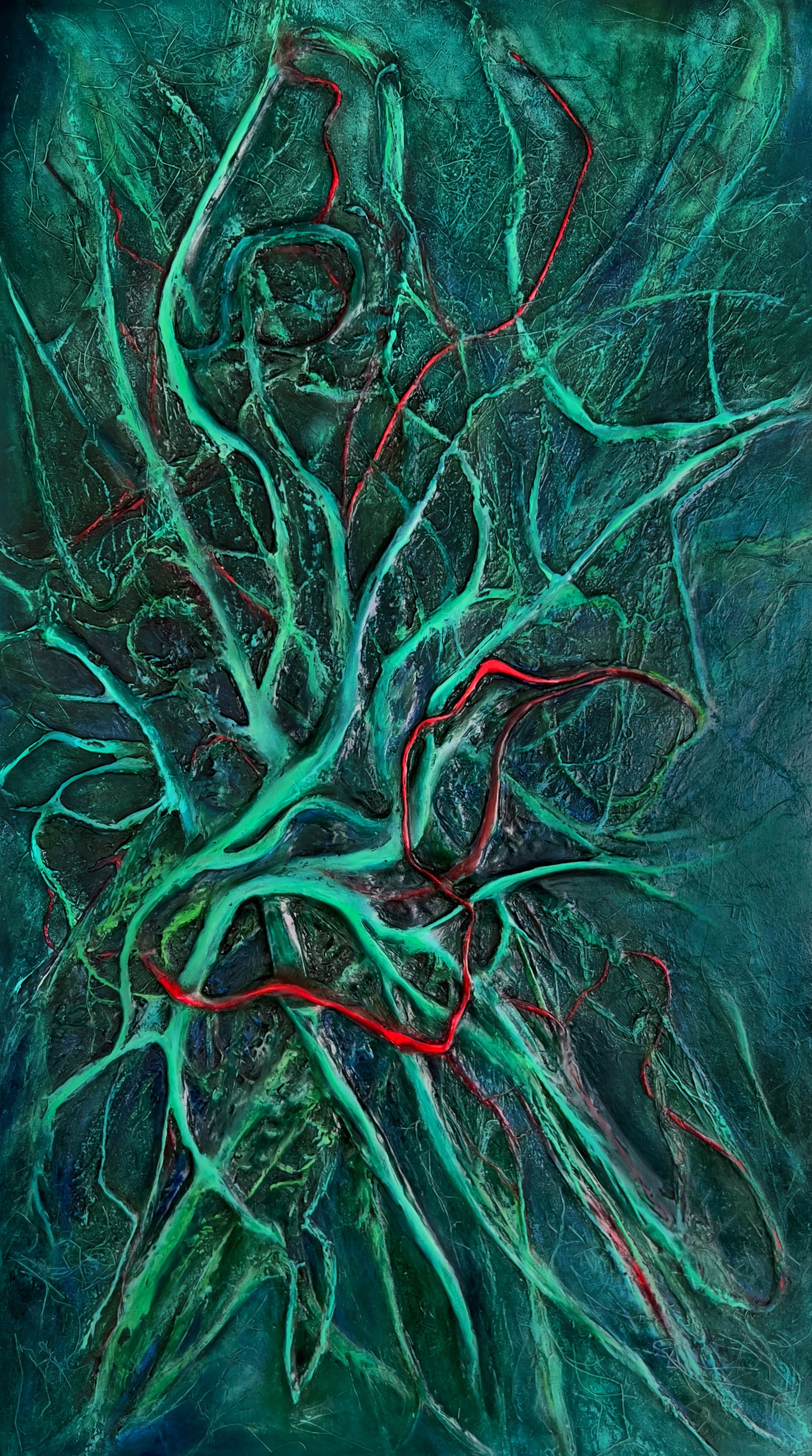 Mixed Media with Oil, Fiberglass on Panel, 24x18